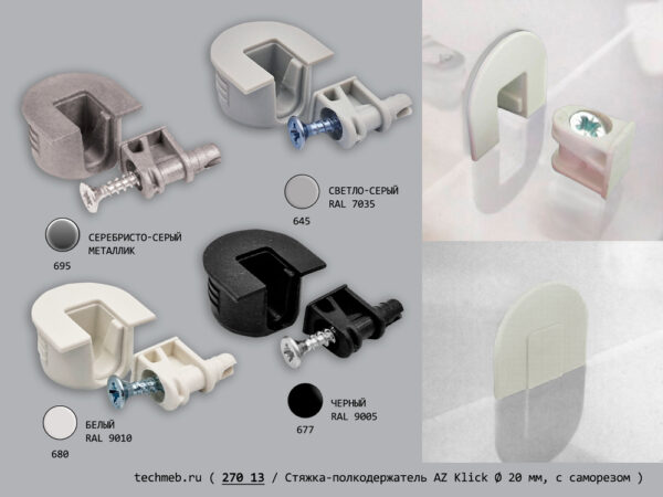 • 270 13 Стяжка-полкодержатель AZ Klick диаметр 20 мм, с саморезом (комплект)