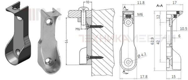 • 278 46 Штангодержатель с двумя отв. под саморез и резьбовым отверстием М6
