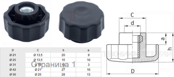 • 122 15 Ручка-фиксатор (гайка барашек) с пластиковым основанием Ø 21 M6