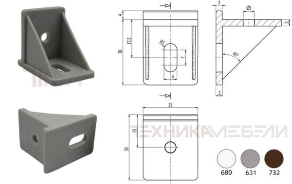 • 210 06 Уголок монтажный пластиковый с ребрами жёсткости и выступом 30х30х25