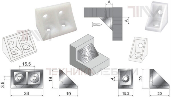 • 210 20 Уголок пластиковый с ребрами жёсткости 33.0 х 19 х 19