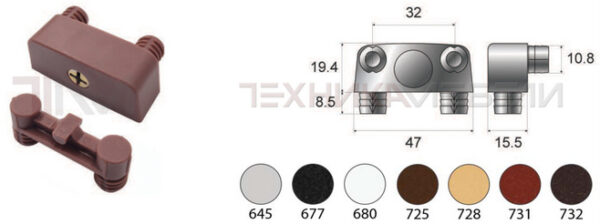 • 274 47 Стяжка трапециевидная с винтом и 4-мя цапфами под отв. диаметр 10 мм A 47 B 19.4 C 15.5