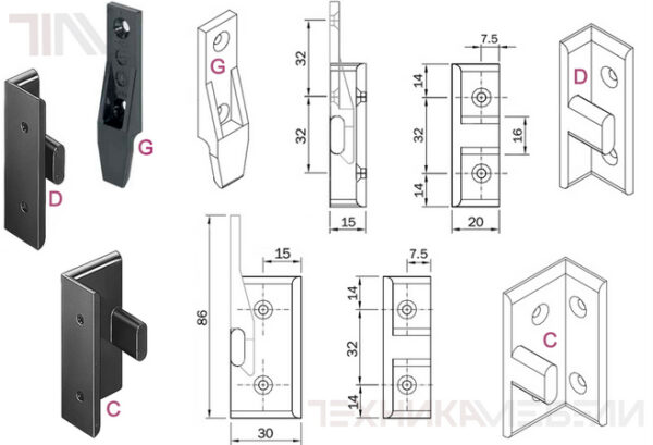 Крепёжные отв. под саморез 111 30 Ø 4 с потайной головкой, межосевое 32 мм. Соединитель предназначен для паралельного монтажа стеновых и шумоизоляционных панелей, соединение элементов каркаса, 2-ух створчатых рамных конструкций, монтаж лёгких перегородок … . Соединение разъёмное. Материал: PC (поликарбонат).