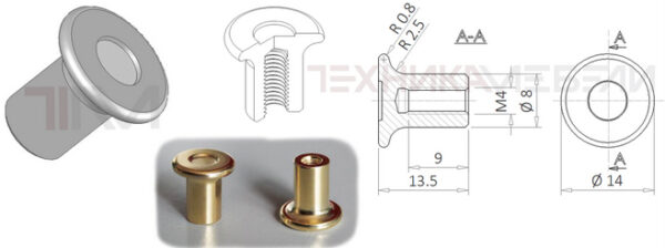 • 521 А0 Ручка-кноб металлическая с внутренней резьбой М4