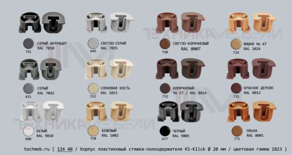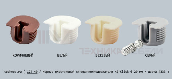 - 124 40 • Корпус пластиковый стяжки-полкодержателя KS-Klick диаметр 20 мм