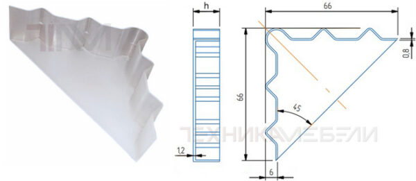 • 024 15 Уголок защитный упаковочный односторонний с ребрами h 13.2 A 66 B 66
