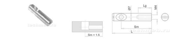 • 555 MC Шток стяжки конической с вн.резьбой M4 (диаметр 7 мм), прямой шлиц Sm 30 L 38 Lg 15