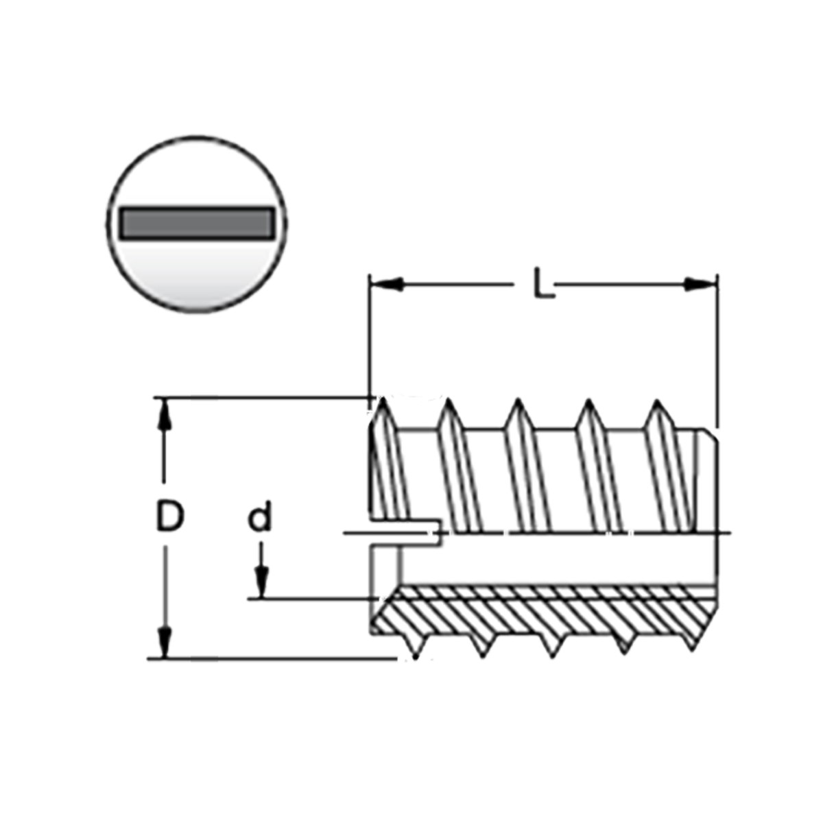 120 A0 Втулка резьбовая, прямой шлиц (DIN 7965, автоматная сталь) M3 xD6 xL6