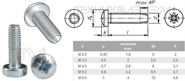 / 166 06 Винт резьбовыдавливающий DIN 7500 C-Z, полукруглая головка d 6.0 L 25