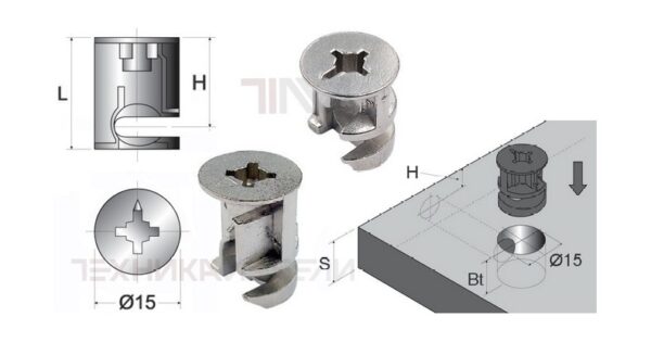 S — толщина плиты Bt — глубина сверления под эксцентрик (см. инструкция)